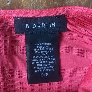 B. Darlin Pale Raspberry Formal Dress. Size 5/6, perfect for S/M. Beautiful ribbed pattern. Cinch waist with stretch. Back zipper closure. Purchased from Macys and only worn once. Perfect for a formal occasion.
