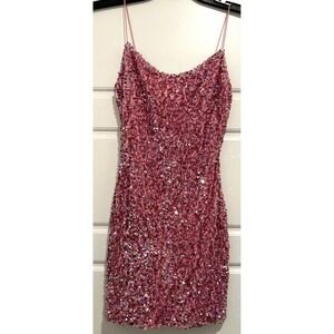 B Darlin Polyester Pink Sequin Slim Fit Mini Dress Thin Straps homecoming Sz 3/4