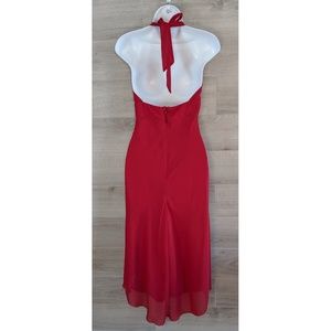 Sexy Red Halter Dress by B Darlin in size 3/4 has open upper back and shoulders with halter tie-straps and banded Empire waist.