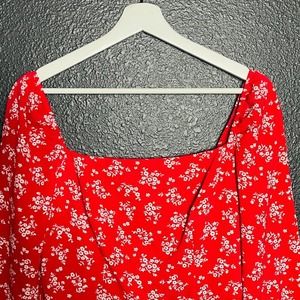 B. Darlin Red Square Neck Ditsy Floral Dress 7/8