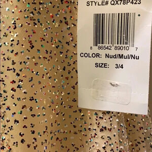 B. Darlin Halter Tie Confetti Long Dress Nude & Gold Colors