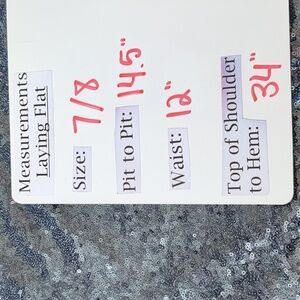 Has not been worn, but the buttons for the open back have fallen off and need to be replaced. Refer to photos for measurements. Ships within 1-2 business days
