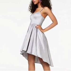 B. Darlin Silver Taffeta Spaghetti Strap Hi Low Dress Sz 13/14