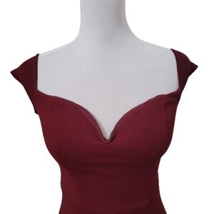 B. Darlin Size 3/4 Wine / Burgundy Maxi Dress. Excellent Used Condition. No Holes, Rips, Stains or Snags. Adorable Fitted Maxi Dress with Wire Form at Cleavage. Long Slit up Front Side. Cap Sleeve. Please refer to measurements in photos to ensure proper fit. Shown on size 6 mannequin.