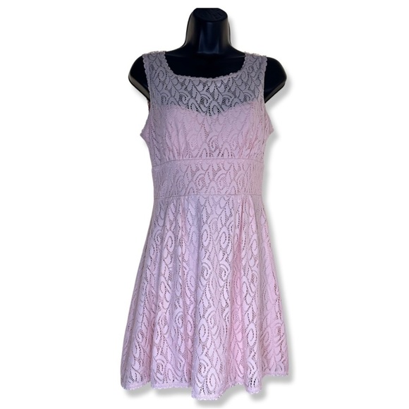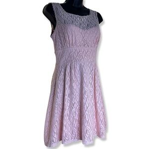 B. Darlin Sleeveless Pink Fit + Flare Dress Lace Crochet Overlay and Padded Bust