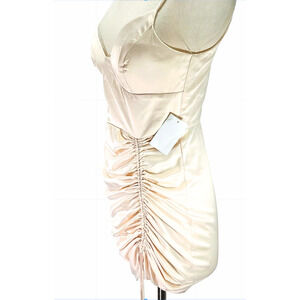 B Darlin Spaghetti Strap Corset Bodice Ruched Tie-Hem Satin Cream Dress Jr 3-4