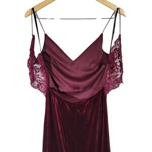 B. Darlin Spaghetti Strap V-Neck Lace Bra-Back Velvet Sheath Dress in Wine NWT