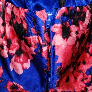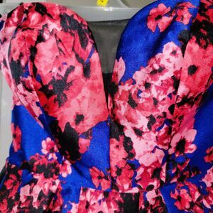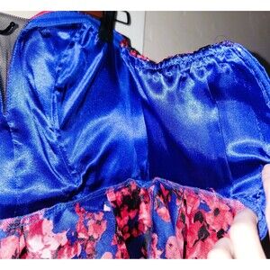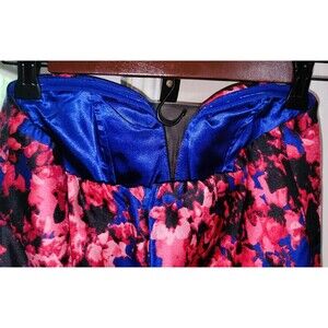 B. Darlin Strapless Sweetheart Bustier Party Dress Blue Red floral black lace XS