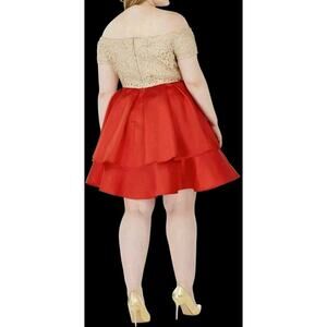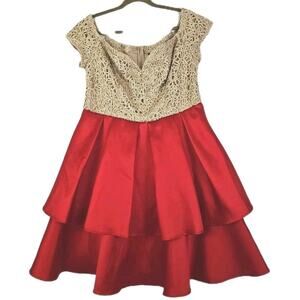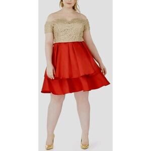 B. Darlin ~Woman Plus Size 16W~ Gold Red Embroidered Prom Cocktail Formal Dress.