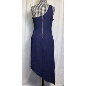 B. Darlin Women's Blue Sparkle Evening Dress Gold Zip Rouching One Shoulder 13/14