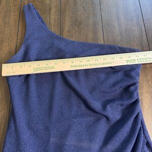 B. Darlin Womens Blue Sparkle Evening Dress Gold Zip Rouching One Shoulder 13/14