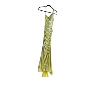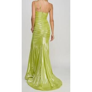 B Darlin Women's Green Metallic One-Shoulder Gown Size 5/6 Junior NWT. Take a shine to this metallic one-shoulder gown from B Darlin. Features Imported. Floor-length formal dress. Asymmetrical neckline; Gown silhouette. Hidden back zipper. One-shoulder design with adjustable straps. Ruched throughout. Lined. Spot clean. Shell: polyester, spandex; lining: polyester.