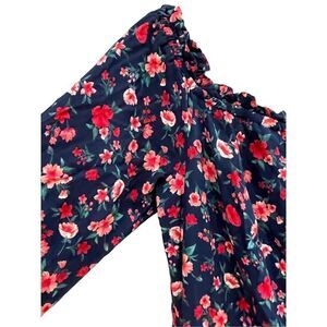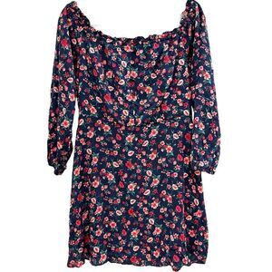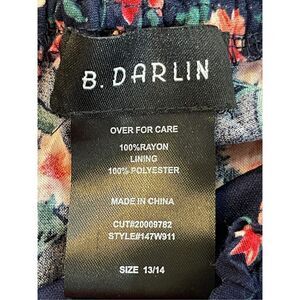 B. Darlin Women's Navy Blue & Red Floral Print Off-The-Shoulder A-Line Dress Size 13/14 NWT