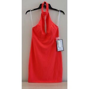 B. Darlin Women's Sz 3/4 Coral Sleeveless Halter Short Party Body Con Dress $54