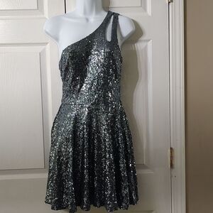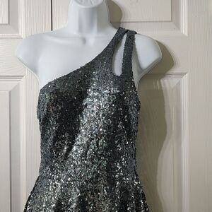 B. Darlin metallic charcoal gray sequin semi formal party New Years Eve Dress