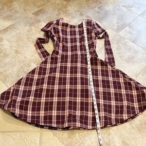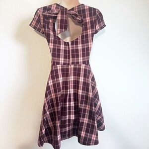 B. Darlin plaid fit & flare skater dress cap sleeve stretchy red pink ju…