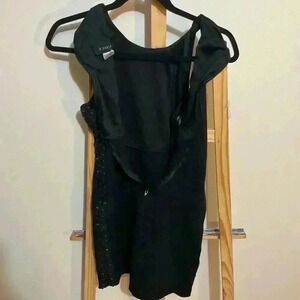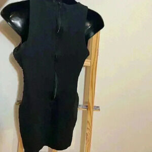 This is a bodycon black dress with back zipper closure. Used in good condition, check measurements because I’m not positive if this is a junior dress or women’s. The back zipper looks like the black part to cover the show of the zipper might not do that anymore, it might change once it’s on.