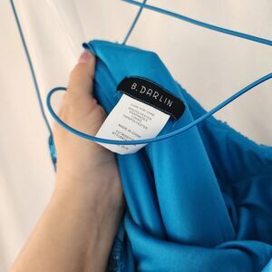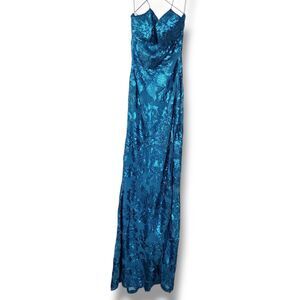 B. Darling Prom All Over Sequined Gown Blue flora Maxi Dress Turquoise Slit New