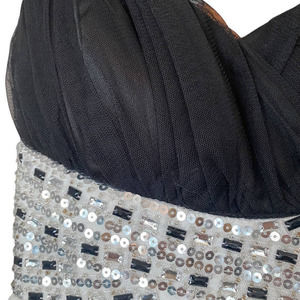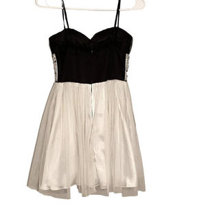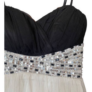 B. Darling White Black Glitter Short Cocktail Special Occasion Dress 3/4. Dress is in excellent condition. Perfect for a summer party or wedding or just to look like a beauty queen for a day. Dress has tulle over Satin fabric with sequins at the waist. Tulle is nicely pleated over the bust.