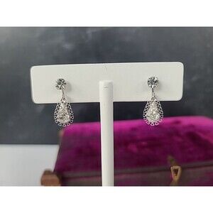 B. David Clear Rhinestone Dangling Clip-on Earrings