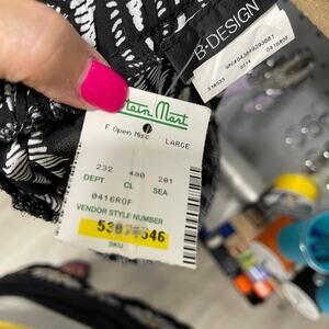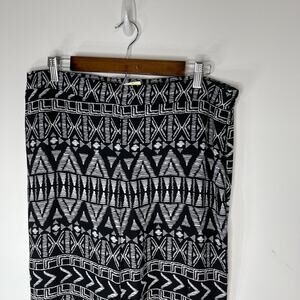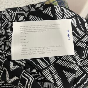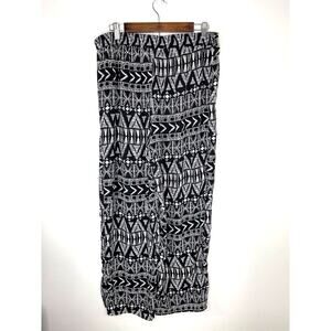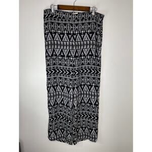 B Design pants slacks trousers women’s size Large black white graphic print soft pants pull on style with elastic waist