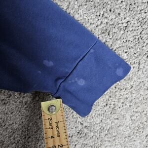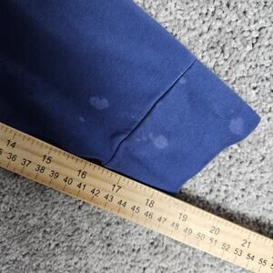 This is faded with multiple discolored spots. There is pilling inside the collar. Please see the photos for the measurements and condition. There are no holes.