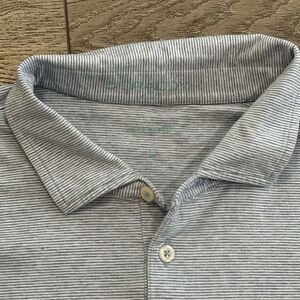 B Draddy Sport Polo Shirt Mens Large Blue Stripe Golf Performance Stretch Preppy
