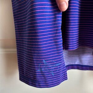 B Draddy Sport Shirt Men's XL Pink Blue Striped Golf Polo Performance Stretch