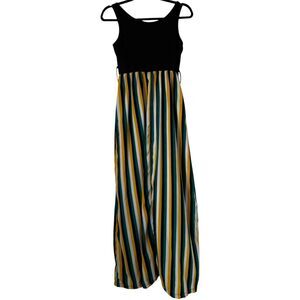 B Famous Maxi Dress Women S Black Green Yellow Stripe Stretch Flowy Vacation