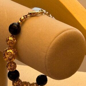 B Italy Bronzo Italia Gold Plated Black Crystal Bracelet