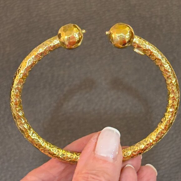 B Italy Hammered Gold Tone Hinged Cuff Bracelet