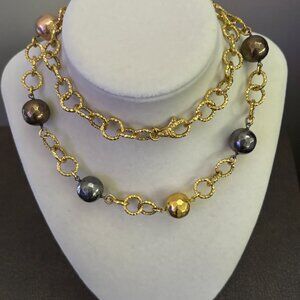 B Italy Gold Tone Link Necklace with Hammered Balls