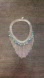 B&J COUTURE Statement short necklace with irridescent burned crystals AB rhinestones (blue and green shades) and gold tone chain fringe