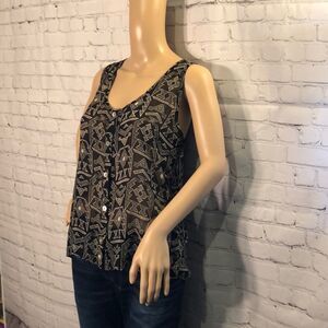 B. Jewel Semi-Sheer Tank Top Lace Inset M