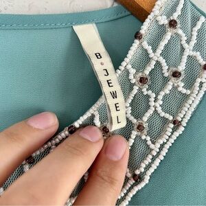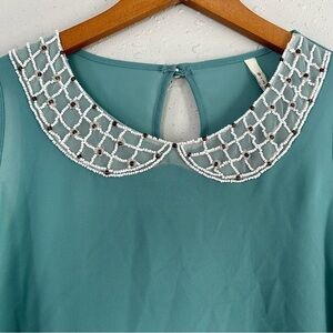 🦋 B Jewel Teal Mint Green Peter Pan Collar Beaded Sleeveless Blouse Medium