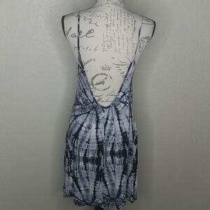 B Jewel gray, black, and white tie dye print spaghetti strap dress with low back. No size tag. Please see approximate measurements below.