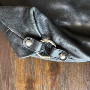 B. MAKOWSKY | Black Leather Hobo Bag Brown Stitch Silver Hardware