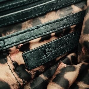 B MAKOWSKY Black Leather Shoulder Bag Chain handle hangtag BM Leopard Lining