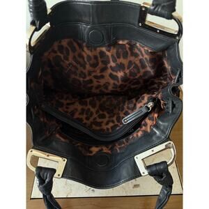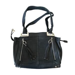B. MAKOWSKY Black Pebbled Leather Hobo Shoulder Bag Double Handle Fringe Tassels