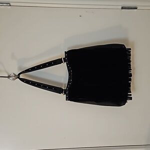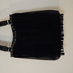 B MAKOWSKY Black Suede Fringe Western Studded Leather Shoulder Bag