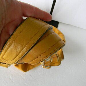 B MAKOWSKY GOLDEN MUSTARD YELLOW LARGE DOUBLE HANDLE LEATHER SHOULDER BAG FALL