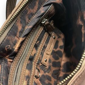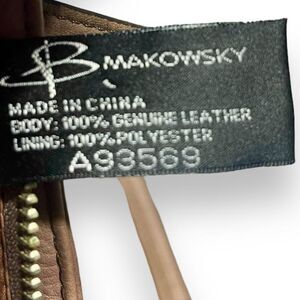 - This B. Makowsky hobo bag features a zip closure and is made of genuine leather with silver hardware. Measuring 12" in width, 8.5" in height, and 6" in depth, this medium-sized bag is perfect for everyday use. The exterior color is a light brown/tan shade, while the lining adds a fun pop of color. The bag has a strap drop of 8" and is equipped with both inner and outer pockets for added storage.