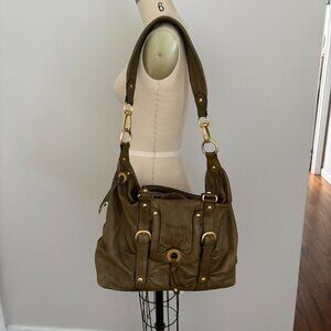 B. MAKOWSKY Green Soft Leather Satchel Purse Shoulder Strap Large Bag
