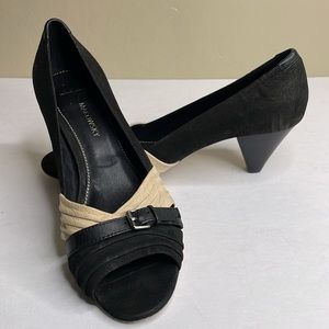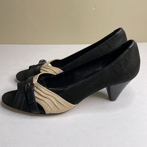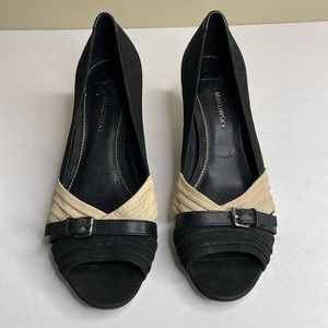 B MAKOWSKY Pump Heels Matte Black & Cream Leather Corporate Wear 8M