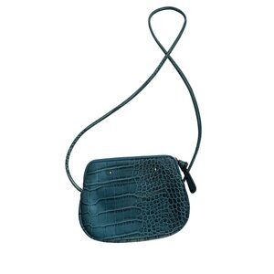 B MAKOWSKY Turquoise Buckle Croc Embossed Leather Crossbody bag