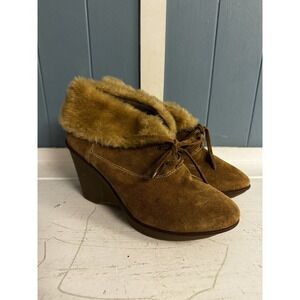 B MAKOWSKY Wedge Suede BF NELLIE Ankle Booties Real Leather Shoes Sherpa Sz 8 W