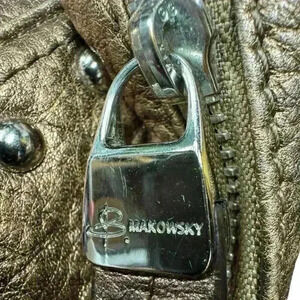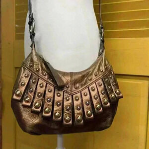 B Macowski Copper Pebble Leather Fringe Studded adjustable Crossbody Boho Bag
