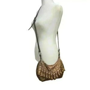 B Macowski Copper Pebble Leather Fringe Studded adjustable Crossbody Boho Bag