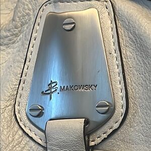 Elegant B Macowsky Large Ivory Shoulder Leather Handbag with stylish silver accents.Wear to the exterior leather refer to photos prior to placing offer/bid.Perfect for any occasion.