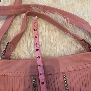 B. Makowsky Alexis Pink Fringe Leather Shoulder Crossbody Bag